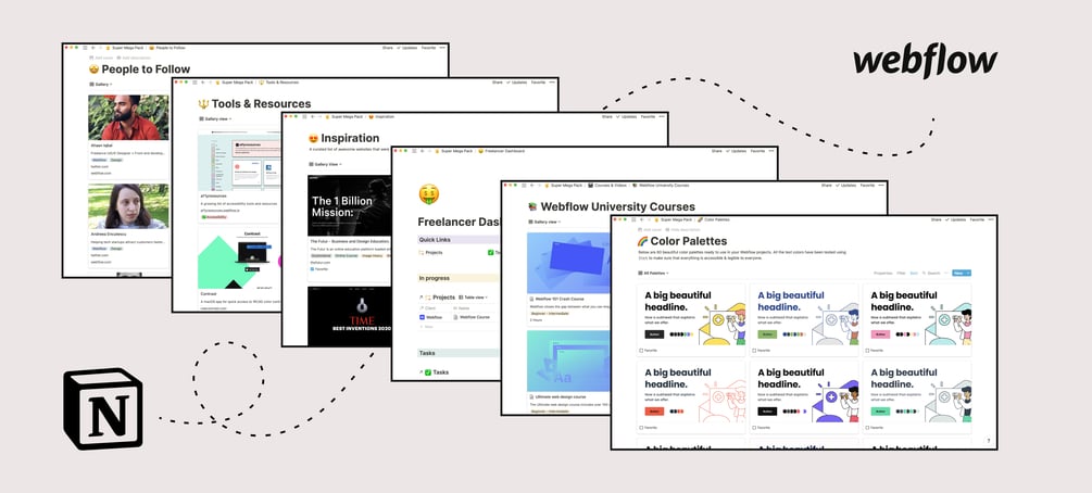 Everything you need for your Webflow workflow, neatly organized in Notion.